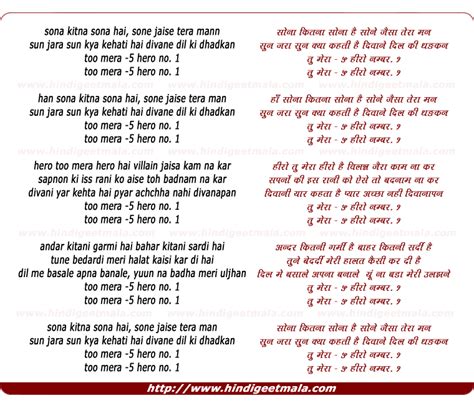Sona Kitna Sona Hai Lyrics In Hindi / Hero no.1 (1997) singer :